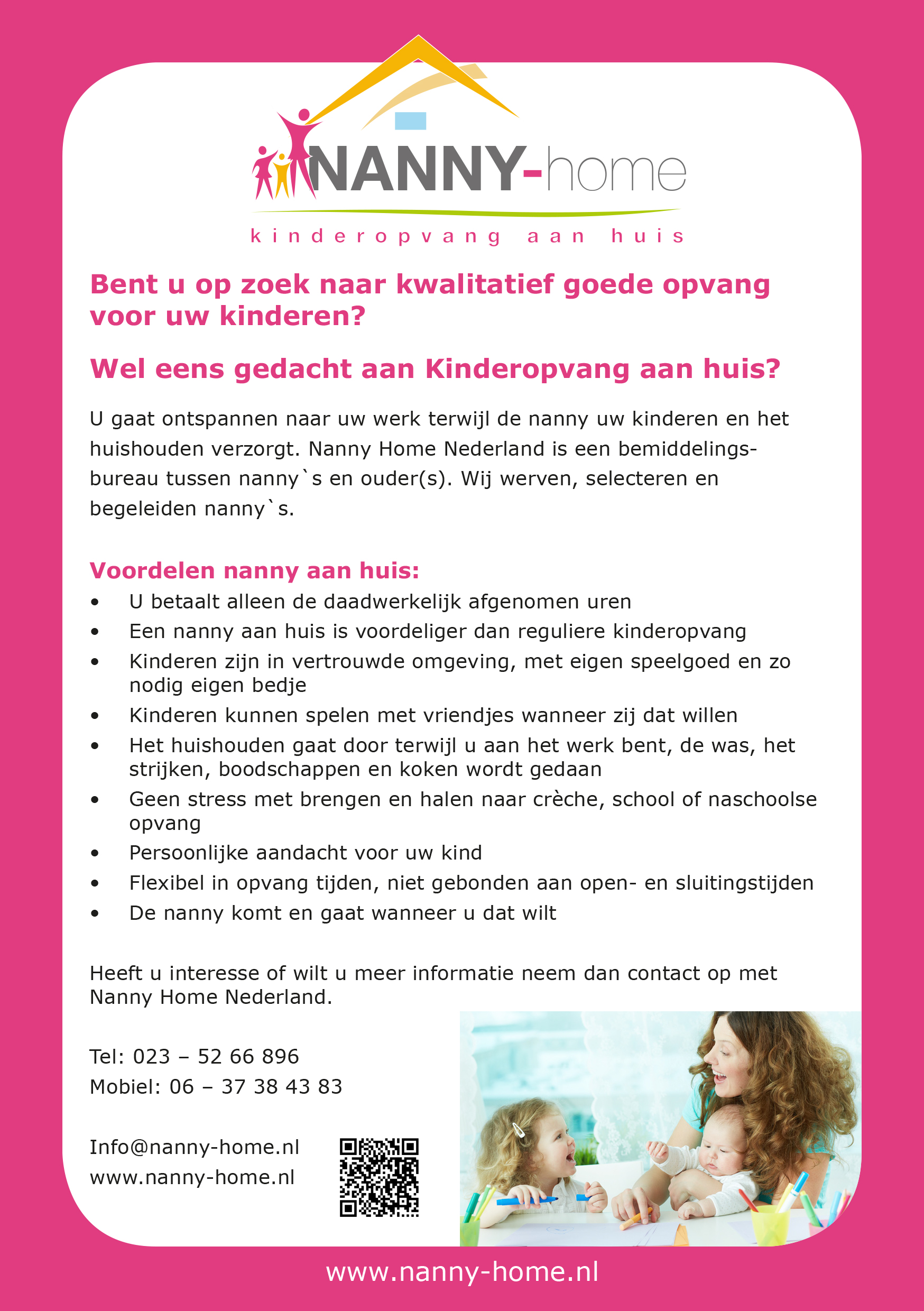 2013 – 2018 Voor Nanny Home Nederland heb ik de total huisstijl ontworpen. Van verschillende logo’s, flyers, visitekaartjes, website. De eigenaresse heeft inmiddels het bedrijf verkocht en een ander bedrijf opgestart waar ik ook weer de huisstijl voor mocht ontwerpen.